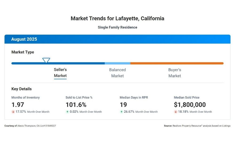 Thinking about buying or selling this fall? Let’s sit down for a quick market catch-up on three favorite East Bay communities: Lafayette, Orinda, and Montclair in Oakland. Each neighborhood has its own rhythm, but all share one theme—low inventory and strong demand.