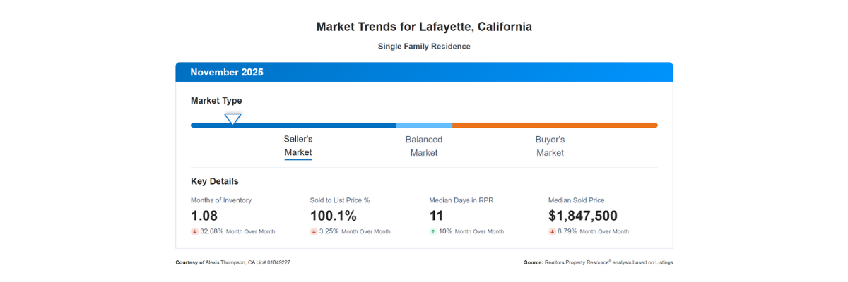 This segment of the market remains firmly seller-leaning despite minor pricing adjustments. Months of supply tightened further to 1.08 months, underscoring continued scarcity. While the median sold price eased to $1.85M month-over-month, homes are still trading essentially at asking price, with a 100.09% sold-to-list ratio. Properties are moving quickly, with a median of just 11 days on market, even as days ticked up slightly. With 18 homes pending versus 17 new listings, demand continues to closely track—if not outpace—new inventory, reinforcing the importance of sharp pricing and strong preparation.