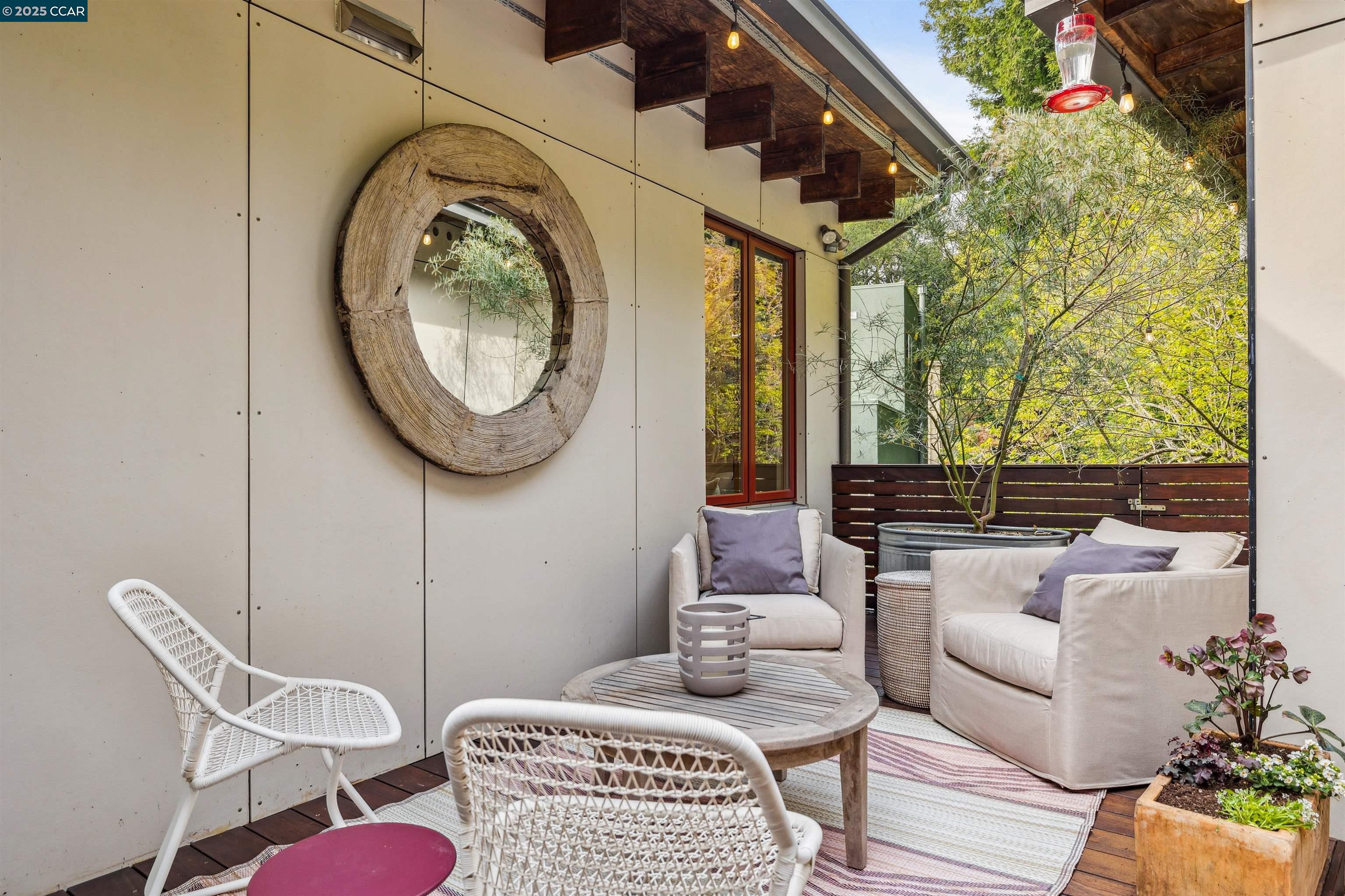 An open floor plan includes light-filled living space with fireplace, kitchen and dining space. Primary bedroom is a serene retreat and two additional bedrooms provide additional space. Wonderful indoor-outdoor connections include filtered Bay views, outdoor living area, water-efficient landscaped gardens and a sport court. A fully-finished detached office in the backyard offers the perfect work-from-home solution with dedicated power, heat-pump, high-speed internet, insulation, and privacy.